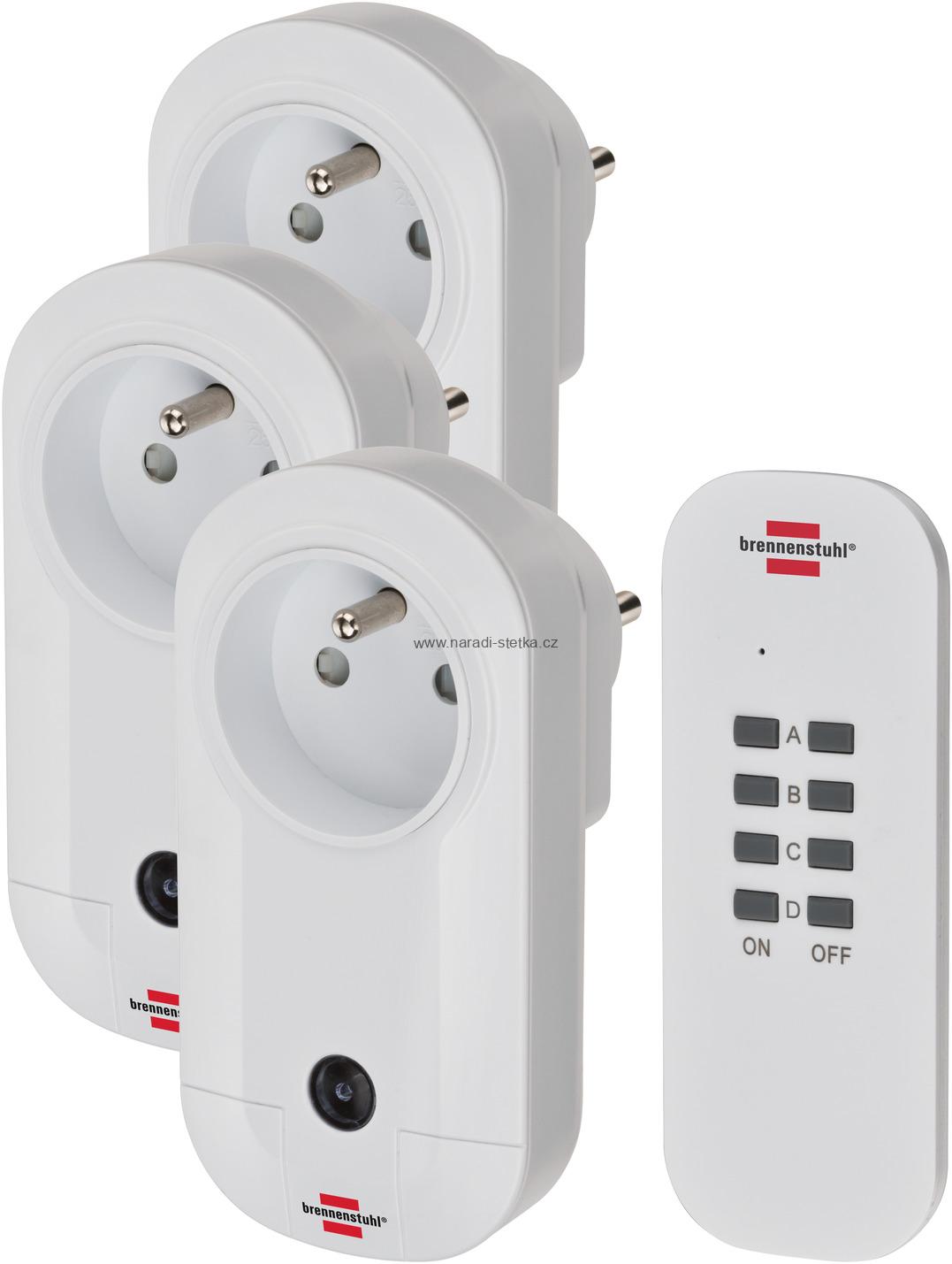 Brennenstuhl sada zásuvek s dálkovým ovladačem, 3 vnitřní zásuvky s uzávěrem bílé, dosah až 25 m
