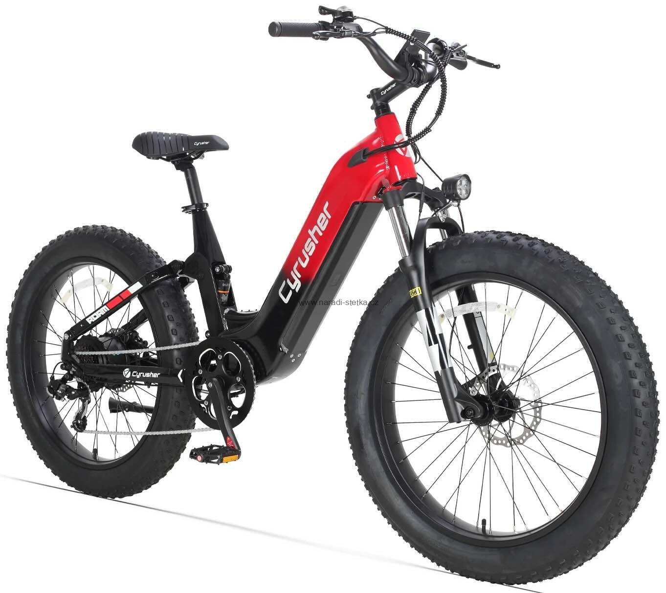Cyrusher Roam celoodpružené elektrokolo s nízkým nástupem červené