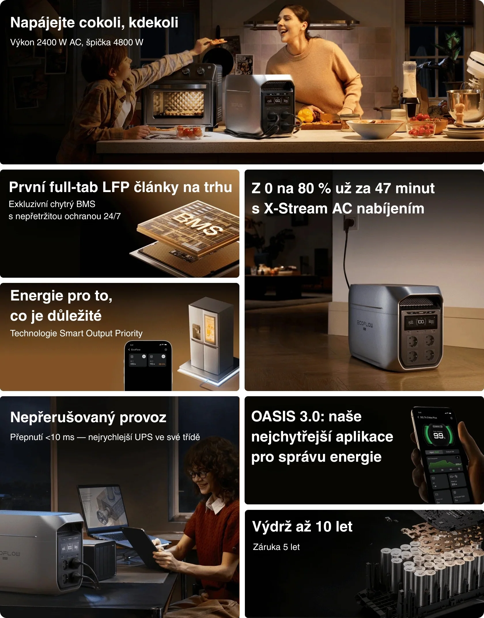 | Záruka | až 5 let (3 roky standard + 2 roky po registraci v aplikaci EcoFlow) |