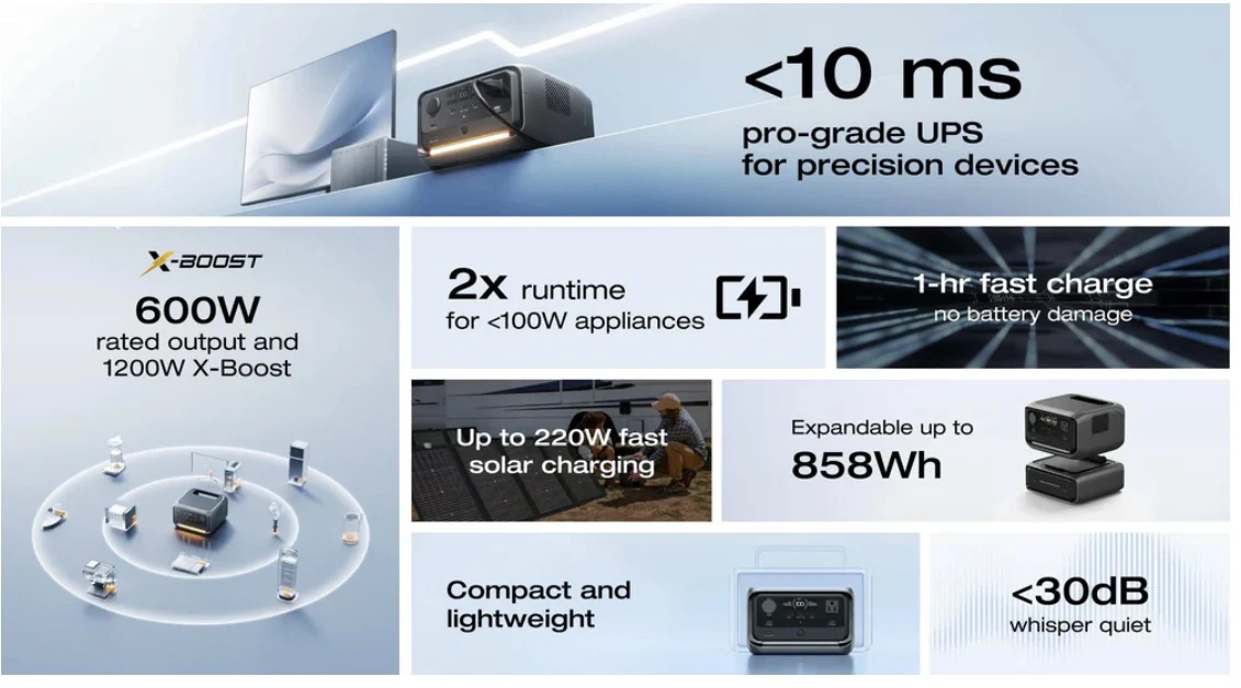 Díky technologii X-GaNPower s vylepšeným odvodem tepla pracuje stanice RIVER 3 Plus Wireless s hlasitostí menší než 30 dB na vzdálenost 45 cm, tedy v tichosti odpovídající vědecké knihovně. I při jejím nonstop provozu budete mít tedy zaručený klid ve dne i v noci.