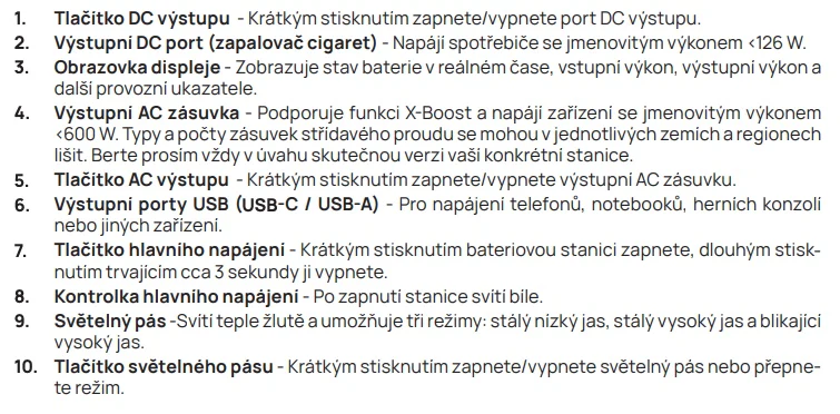| AC výstup (pouze zátěž): | 3 x 230 V ~ 50 Hz, celkem 600 W |