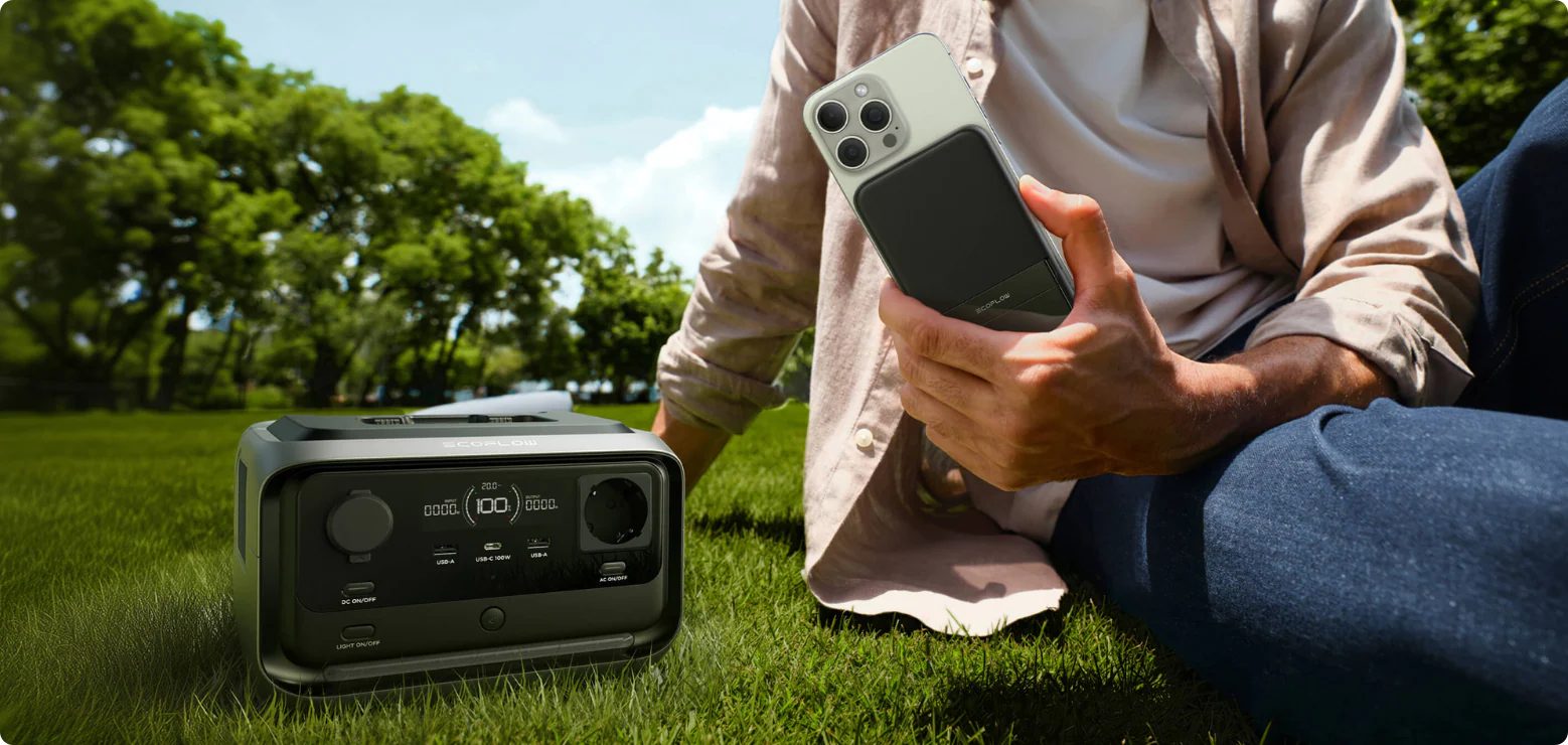 Součástí balení RIVER 3 Plus Wireless je zabudovaná magnetická powerbanka EcoFlow RAPID 5000 mAh. Patentovaná technologie EcoFlow X-Stream nabije powerbanku z 0 % na 70 % už za 33 minut.