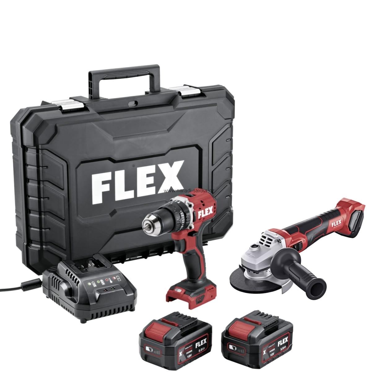FLEX ASN2, Sada FLEX PD 2G 18-EC LD 55 TC, 2 rychlostní aku vrtací šroubovák 18 V + FLEX LB 125 18.0-EC C Aku úhlová bruska s brzdou 18,0 V, 125 mm
