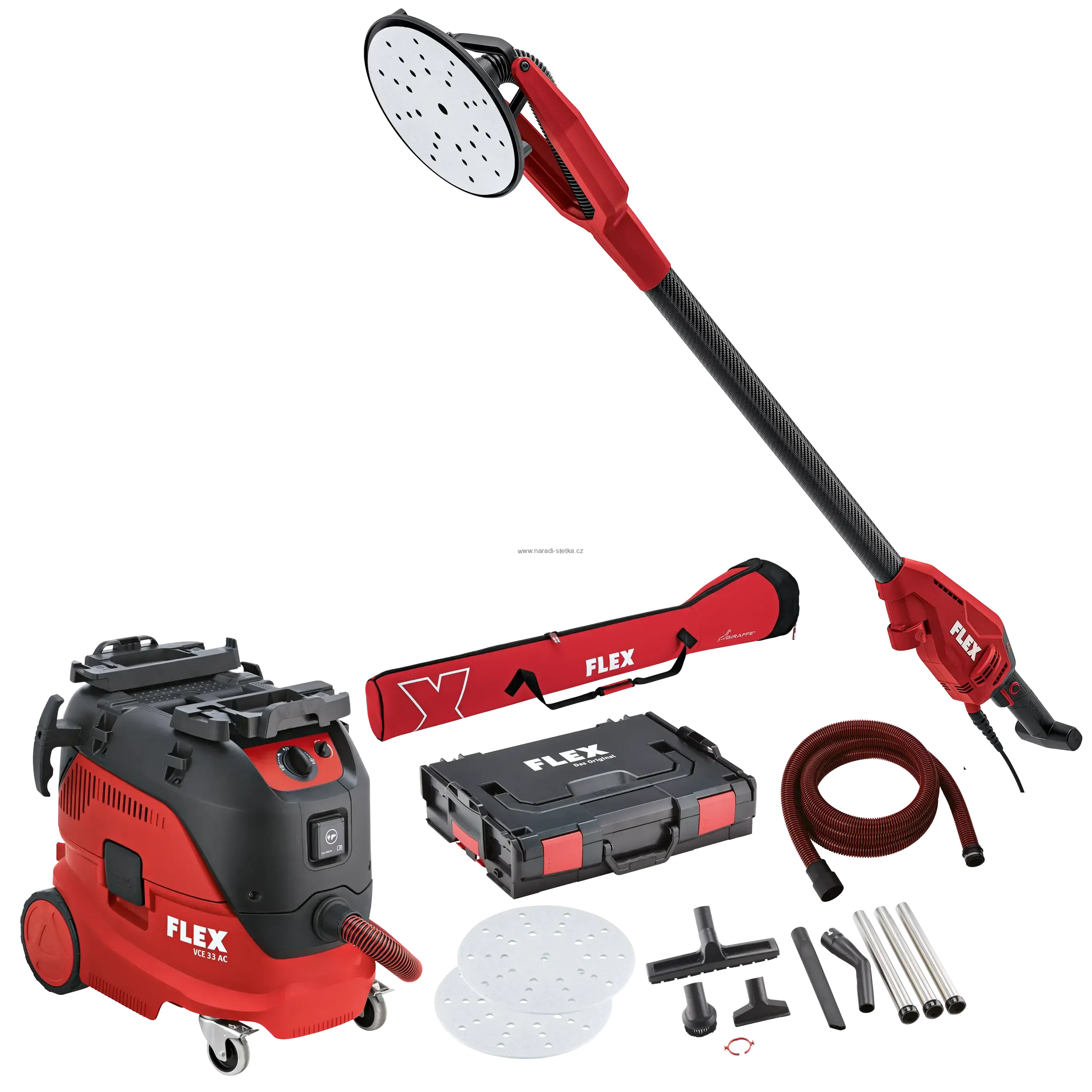 FLEX GE 6 X-EC + VCE 33 L AC Set + Brusný papír, Bruska na stěny a stropy Giraffe® včetně brusného papíru + bezpečnostní vysavač 30 l, třída L