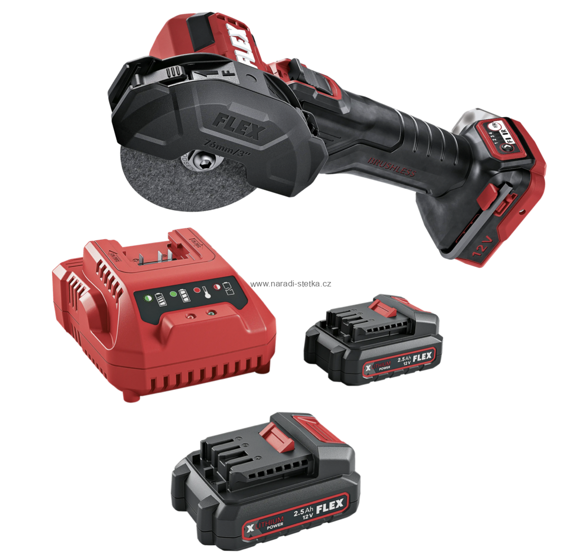 - 1x FLEX P-Set 12-22 Q, sada dvou akumulátorů 2,5 Ah, 12 V a nabíječky