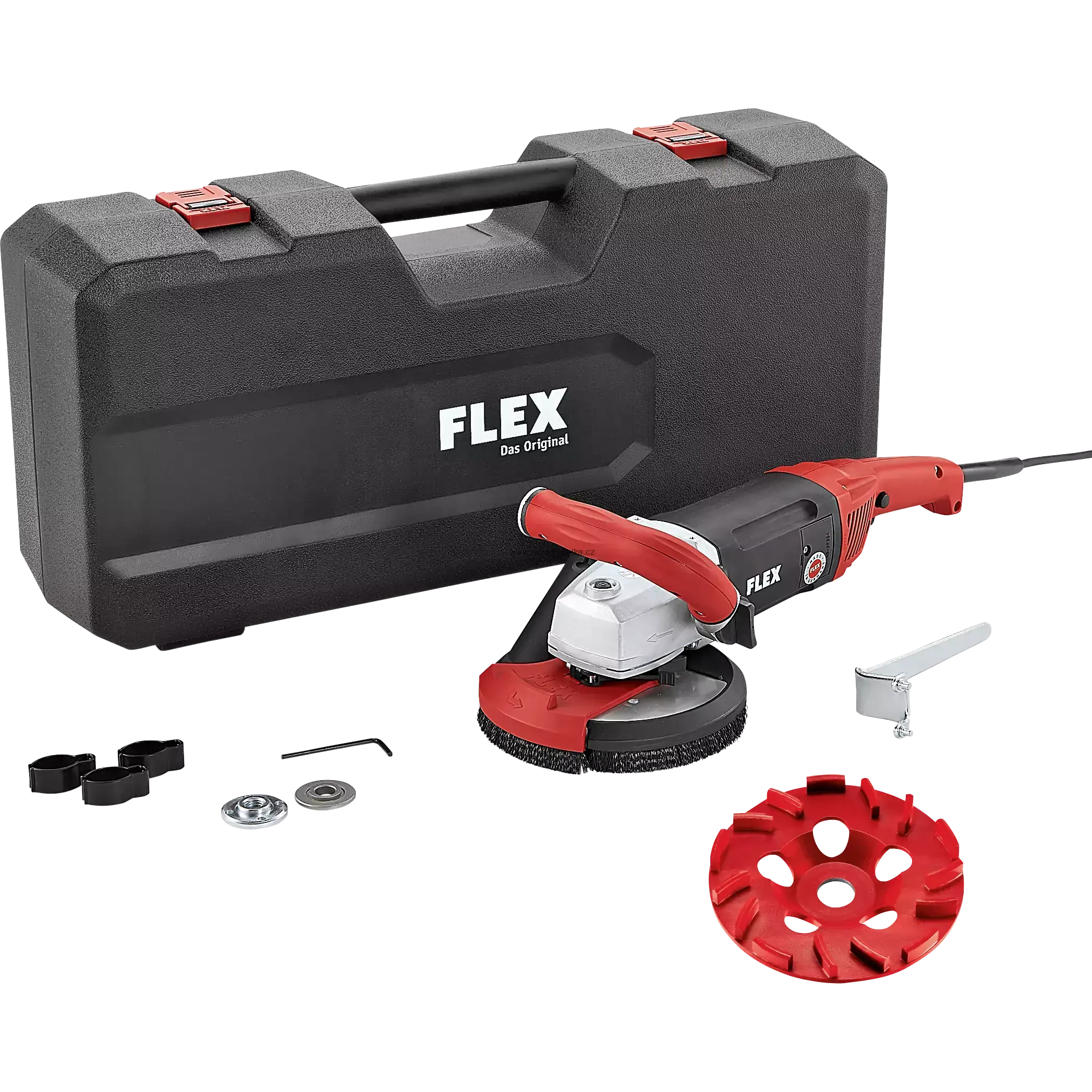 - Ochranný kryt: s výkyvným segmentem na broušení až ke stěně a výškově nastavitelný pro uzpůsobení dle výšky kotouče pro optimální odsávání prachu