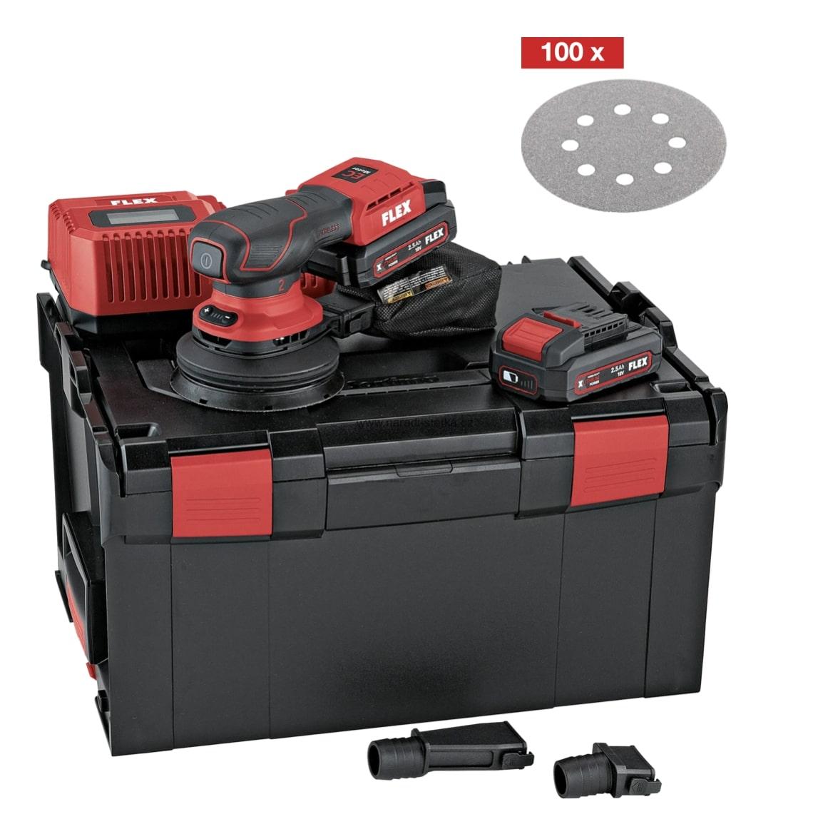 FLEX ORE 2-125 18-EC/2.5 Set, Aku excentrická bruska s regulací otáček bezuhlíková 18 V + Akce brusivo 100ks
