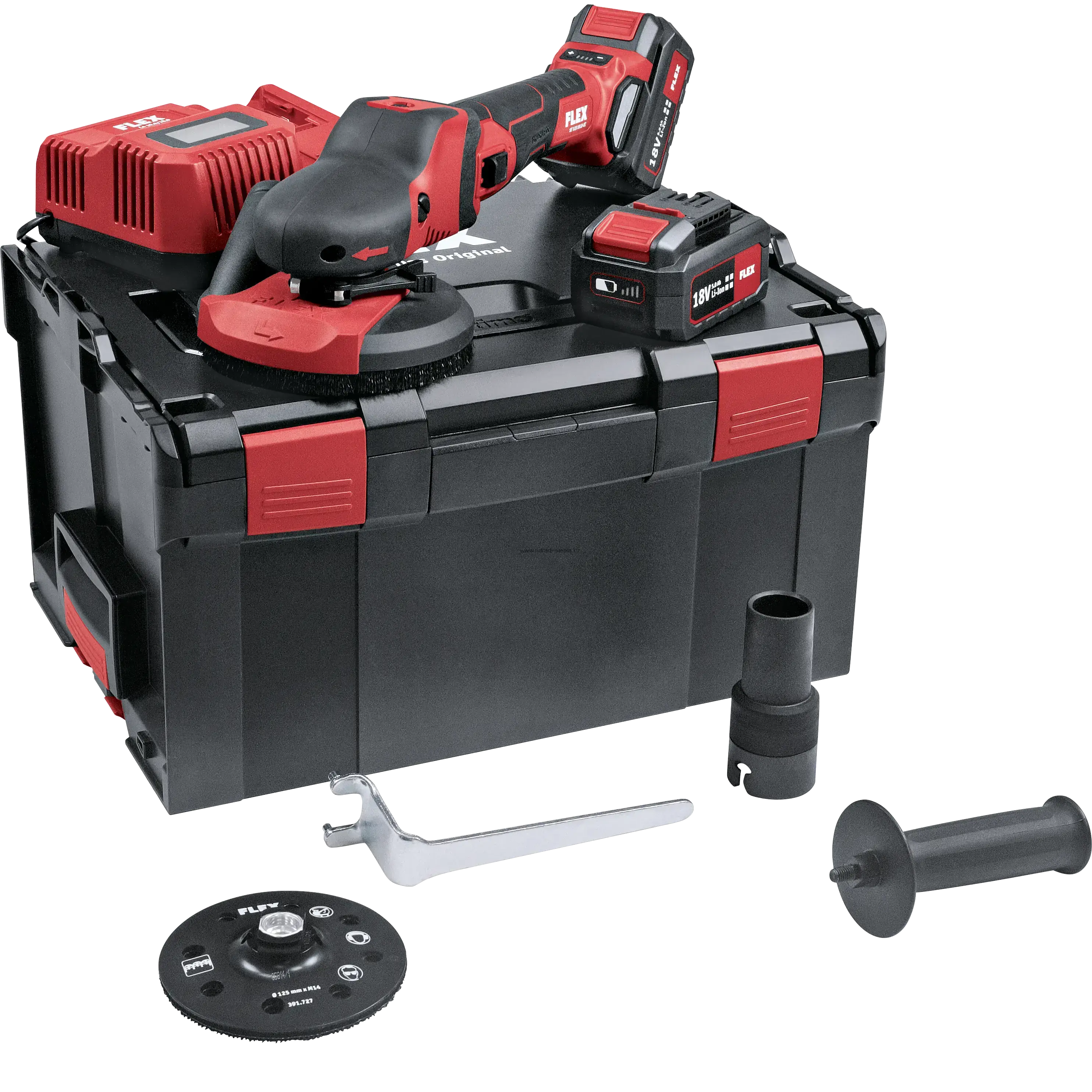 FLEX SE 125 18.0-EC/5.0 Set, Aku-SUPRAFLEX 18,0 V, speciální bruska na broušení lakovaných povrchů, dřeva, kamene a kovů