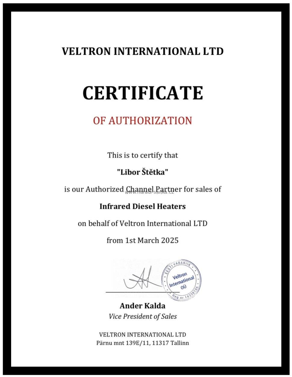 - Jsme výhradní dovozci a autorizovaní prodejci infračervených naftových topidel Veltron Hipers