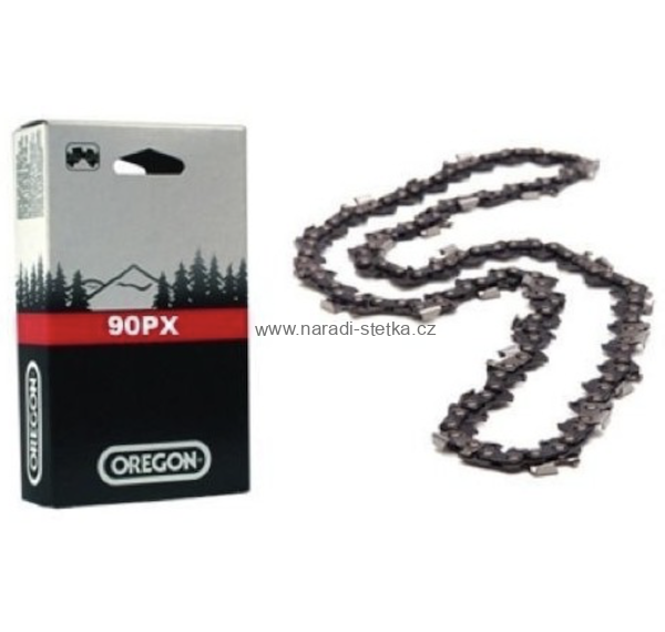 90PX řetěz se vyznačuje úzkou řeznou spárou a vysokým výkonem. Jeho výhodou je, že je šetrný k pohonné jednotce, má nízký zpětný vrh a zaručuje nízkou spotřebu paliva. Není náročný na údržbu. Řetěz je vhodný pro elektrické, aku i benzínové pily k údržbě zeleně na zahradě i pro arboristy používající jednoručky.